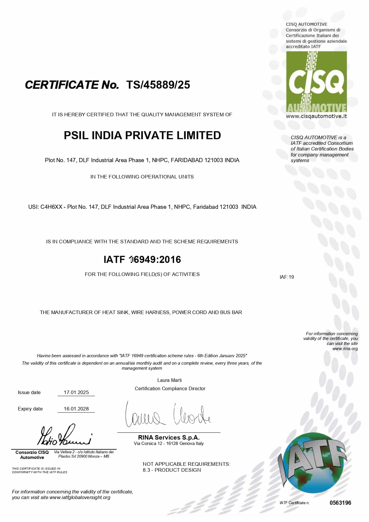 PSIL India Pvt Ltd, incorporated in 2003, is counted as a renowned organization involved in manufacturing and supplying Aluminium Heat Sinks, Wire Harness and Bus Bars. We are ISO and IATF certified, ensuring top-quality manufacturing standards and reliable products. We are a Delhi-based Heat Sink Manufacturer Company; however, we supply to Delhi/NCR and all over India.